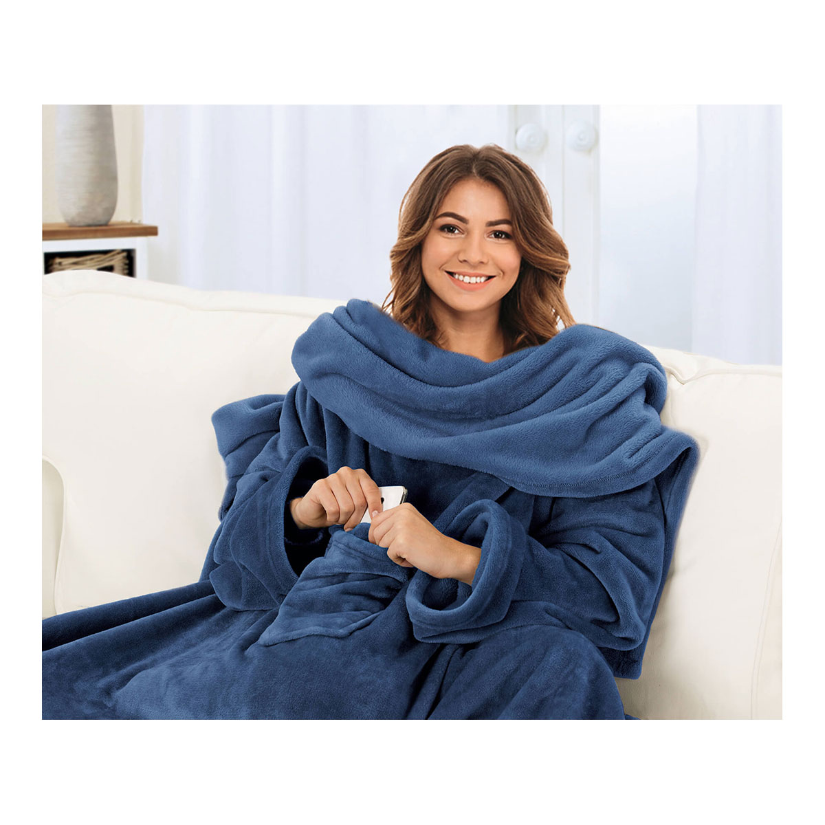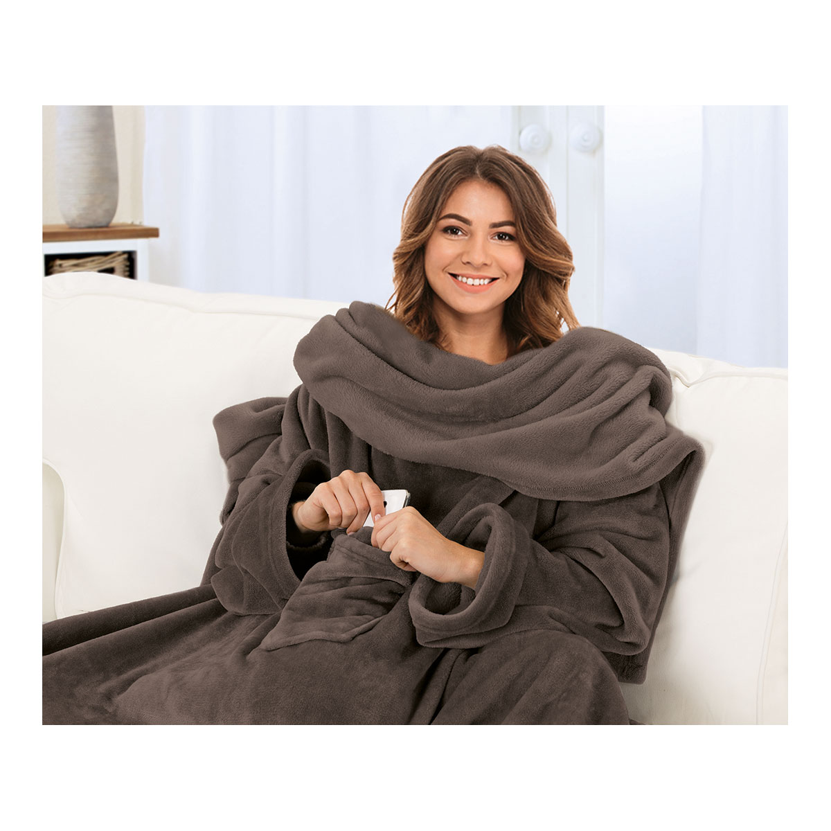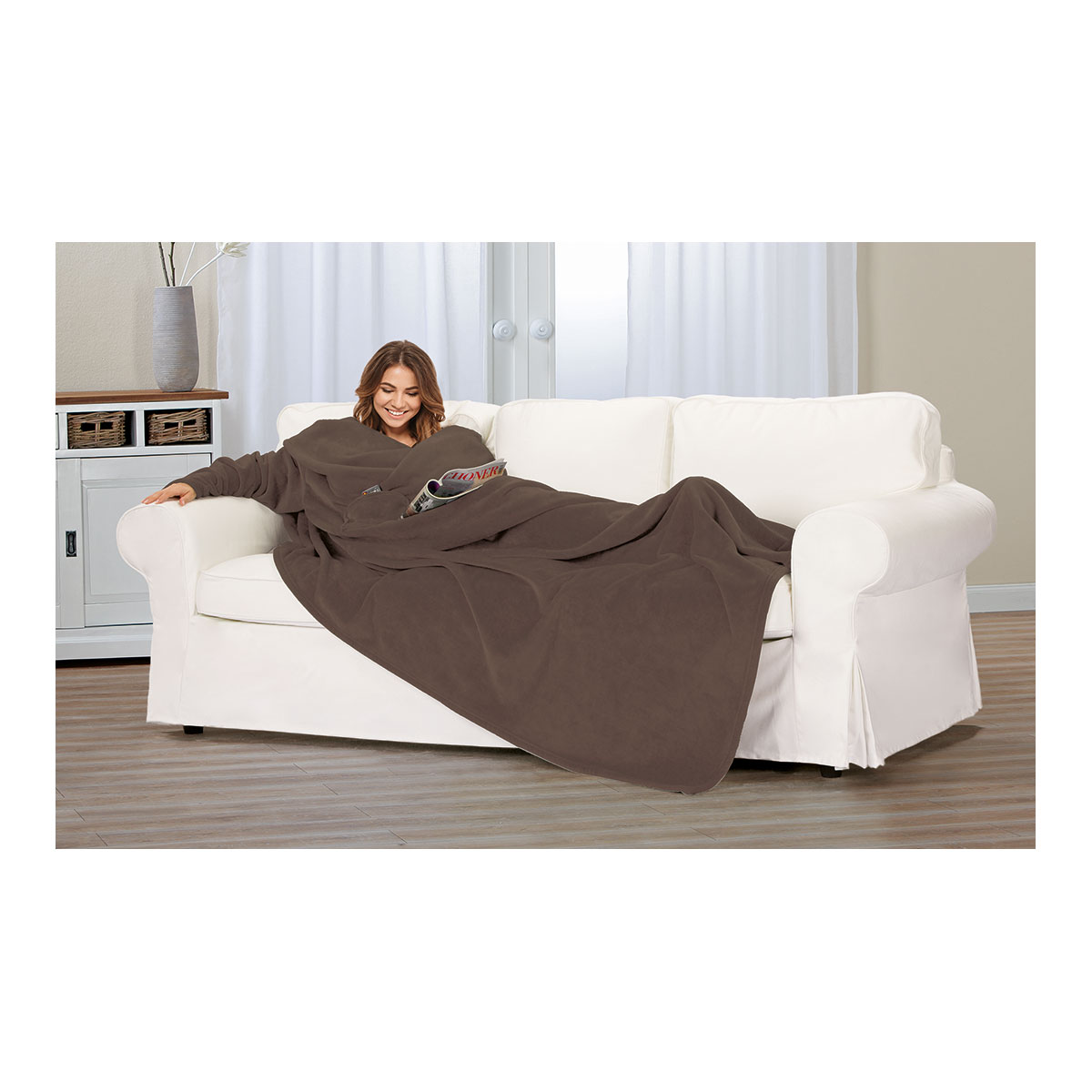 Gemütliches Wohnambiente: Flauschige Kuscheldecke mit Ärmel (150 x 240
