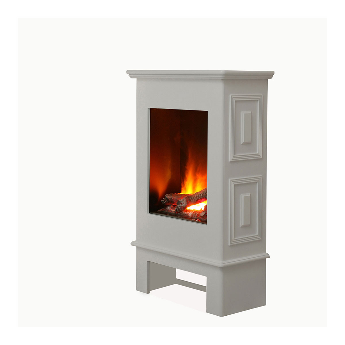 Der Elektro-Scanfire-Ofen wurde den typischen Holzöfen mit Kachel oder Steinverkleidung nachempfunden. Die sorgsam abgestimmten Applikationen die an echte Kacheln erinnern, sowie die eleganten, leicht gerundeten Außenseiten ziehen die Aufmerksamkeit auf sich. Das Holzfach, bestückt mit dekorativen Holzscheiten, macht diesen Artikel noch authentischer.