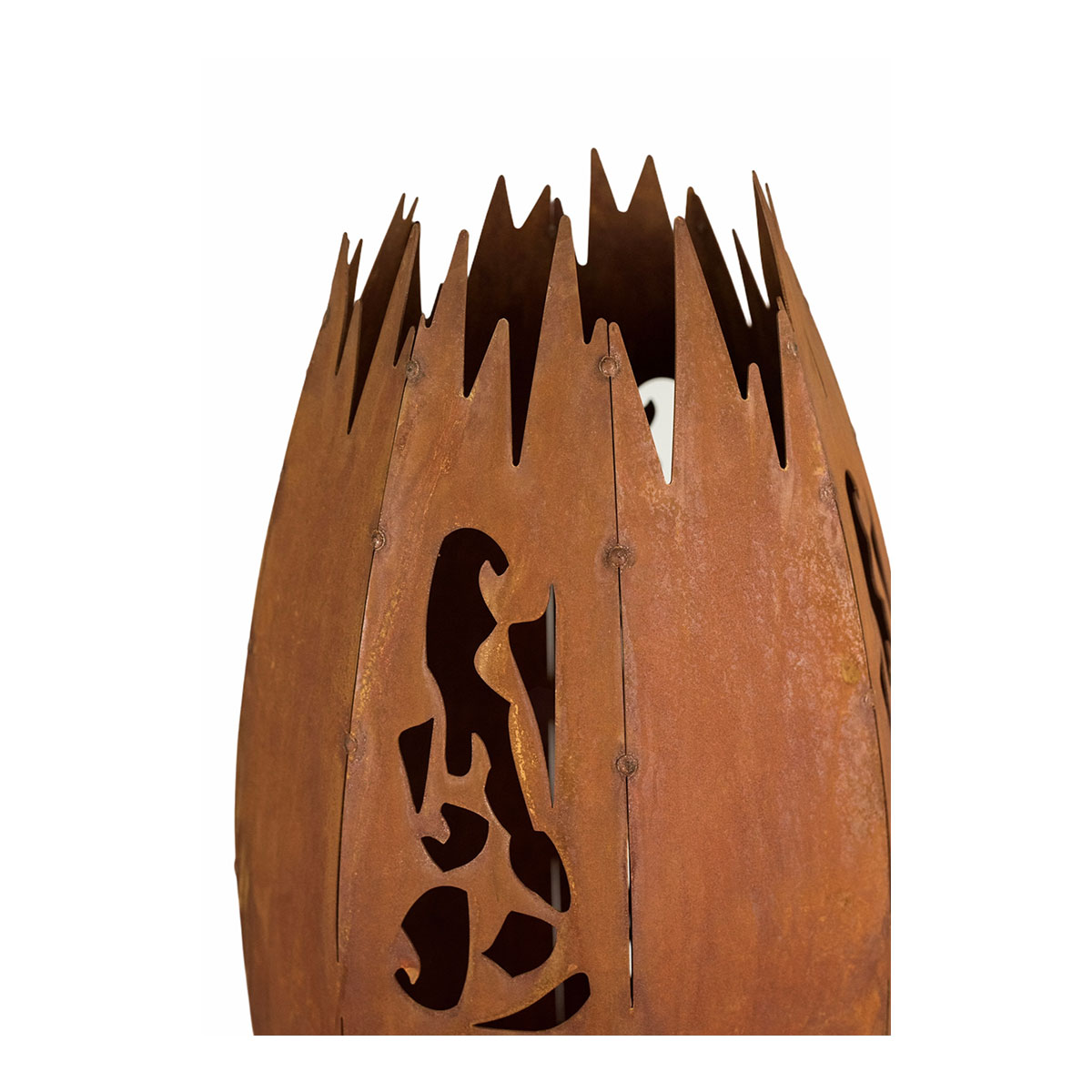 Mit Hand und Liebe im Bayerischen Wald gefertigt!Das mit viel Liebe zum Detail gefertigten Metallobjekt überzeugt durch seine ausgezeichnete Qualität und die einzigartige Optik im Edelrost-Look. Die Leuchte Oval hat eine Höhe von 100cm und einen Durchmesser von 45cm. Sie ist hervorragend für den Außenbereich geeignet. Der passende Beleuchtungssatz ist im Lieferumfang mit enhtalten und zaubert ein einzigartiges Ambiente in Ihren Garten oder in die Wohnung! Durch die gezackte Öffnung und das besondere Mosaik-Muster an den Seiten wirft die Leuchte ein tolles Schattenmuster an die Wand. Hinweis: Achten Sie darauf, die Dekoration nicht auf hellen Pflastersteinen zu platzieren, da durch den natürlichen Prozess die Echtrost-Patina abfärben könnte. Ebenso kann es zu Abfärbungen bei Kontakt mit Haut, Textilien etc. kommen. Der Artikel wird erst nach Bestelleingang für Sie gefertigt. Daher beträgt die Lieferzeit ca. 4-6 Wochen.