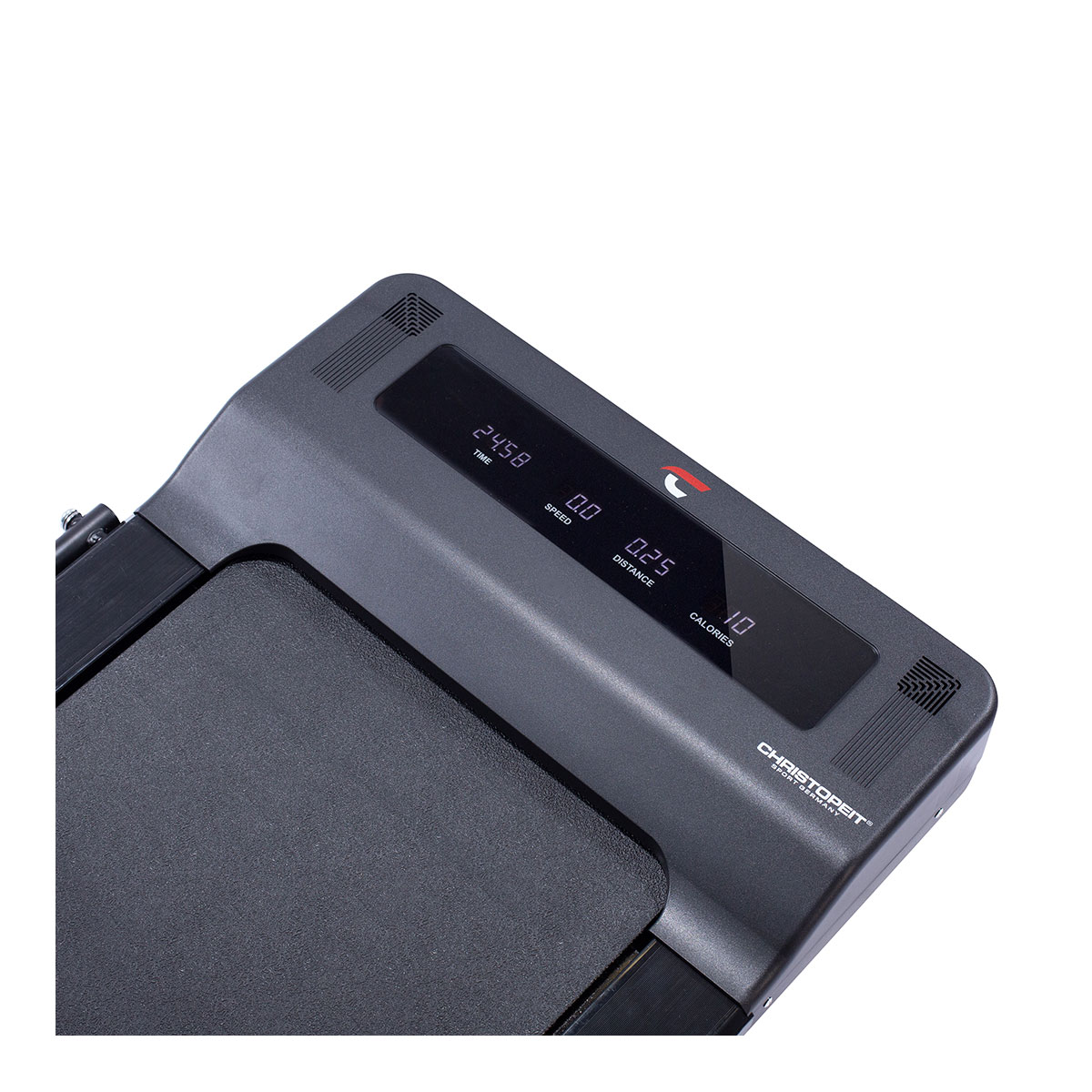 Alle Programme und auch die Geschwindigkeit werden einfach über die mitgelieferte Armband-Fernbedienung eingestellt und gesteuert. Die Geschwindigkeit kann von 1 km/h bis 8 km/h gewählt werden und ist in 0,1-km/h-Schritten einstellbar.
